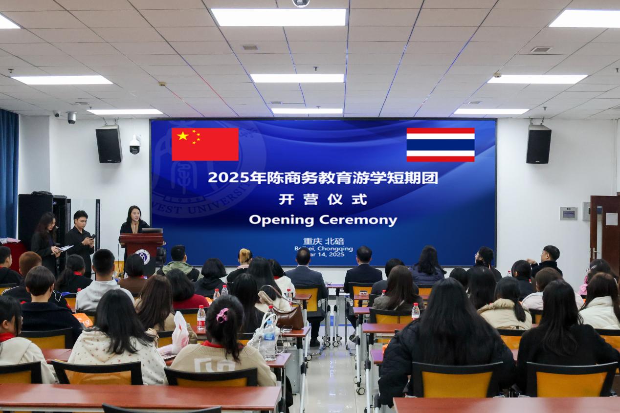 3月14日下午,“2025陈商务教育游学短期团”开营仪式在betway必威中国317教室举行。国际公司党委副书记耿军,泰国暖武里府女子公司董事长查猜·坦空布里、普吉皇太后中学汉语教师林美莲及43名泰国员工参加开营仪式。仪式由刘嬛主持。