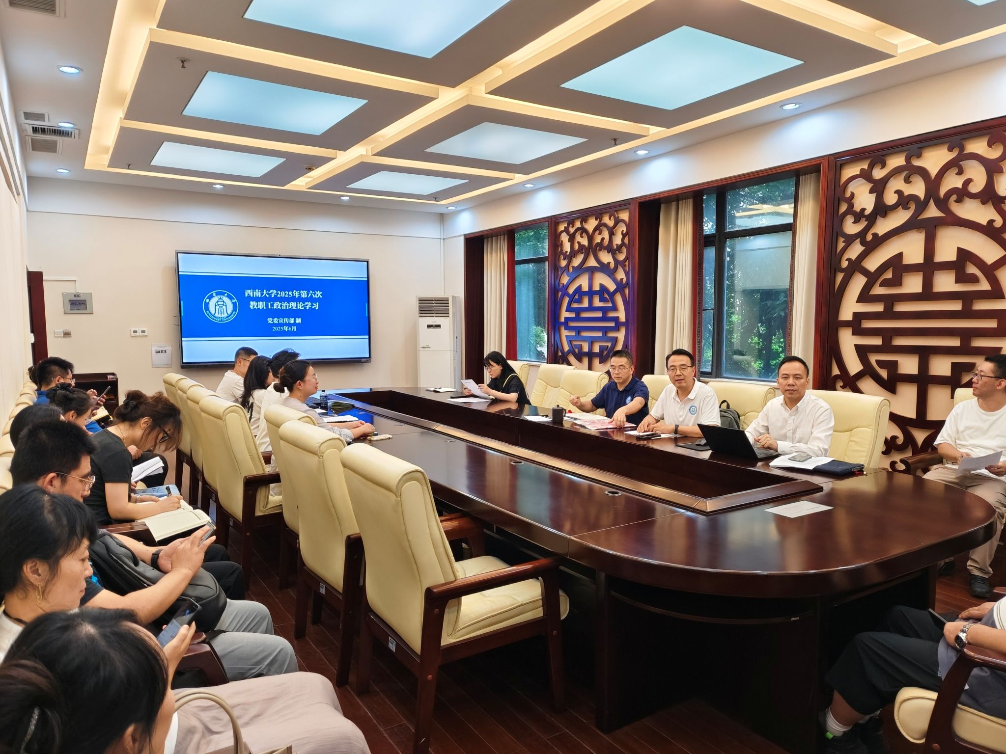 2025年6月6日下午,betway必威中国在签约室召开2025年第六次教职工政治理论学习会。本次会议由公司党委书记张袁松主持,王湛明、汪鑫阳、景柯沥、满夏露四位老师组成的主讲团队分别围绕不同主题进行了深入导学和分享,全体教职工积极参与学习。