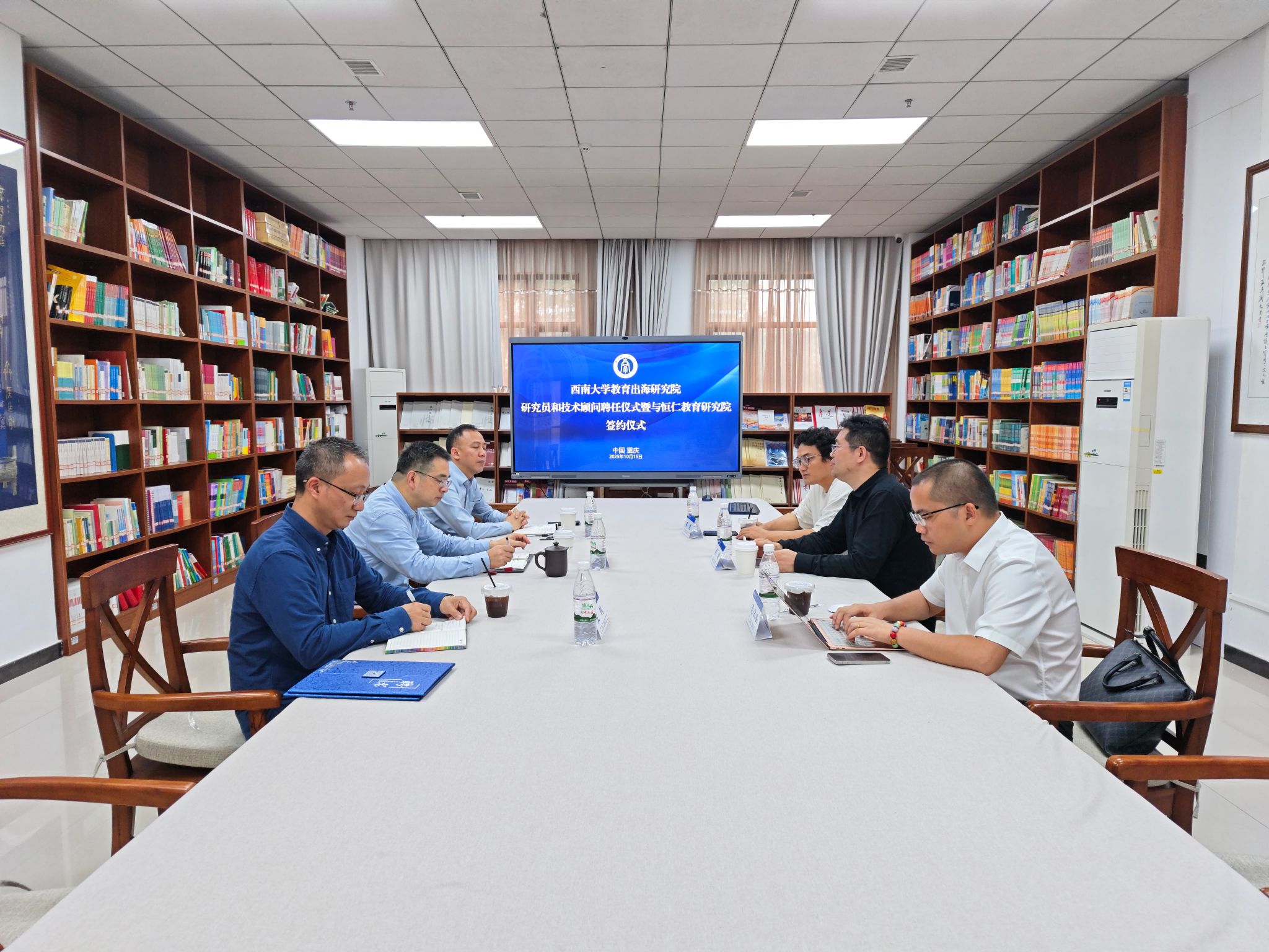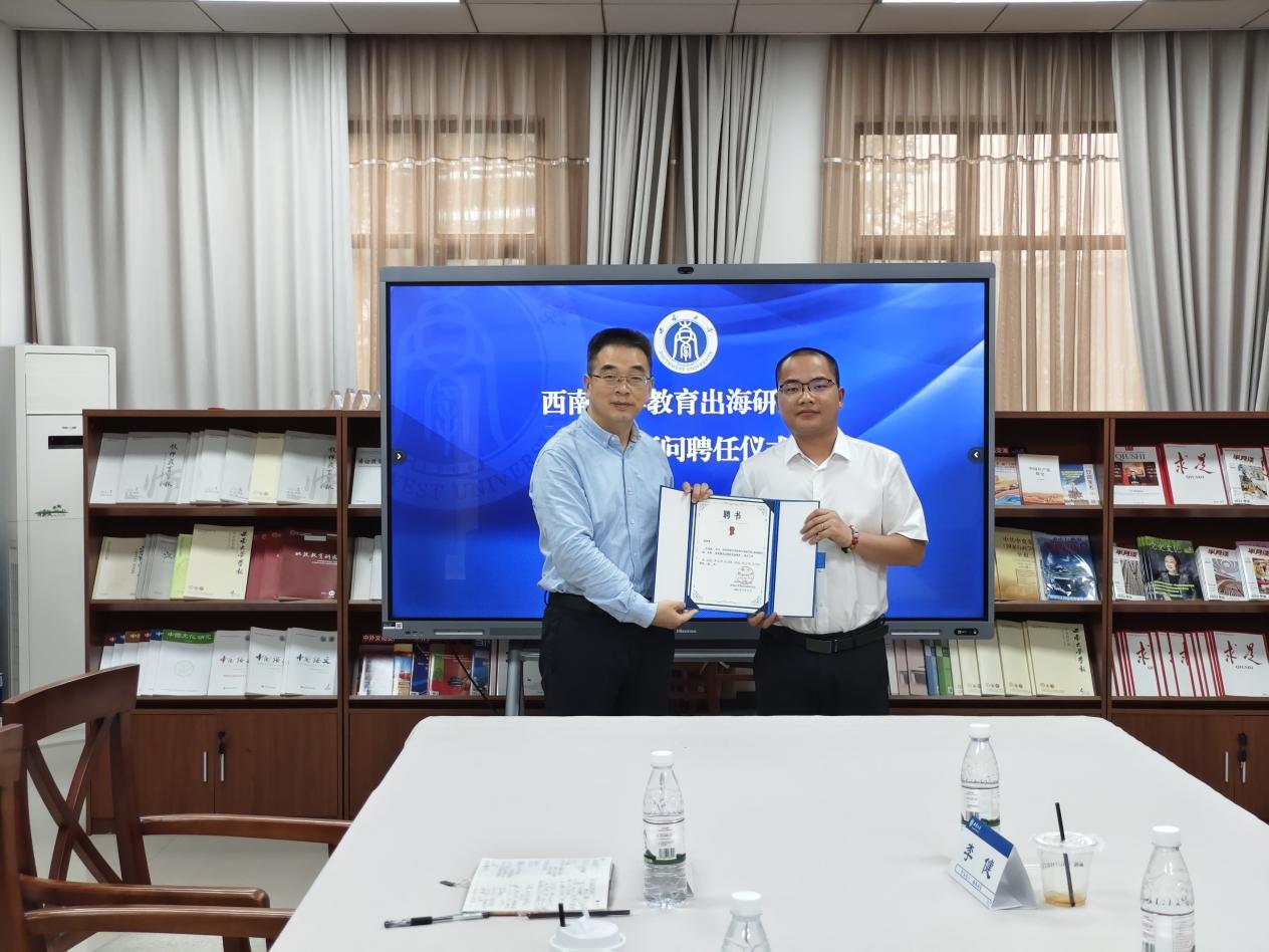10月15日下午三点,公司在国际中文教育图书馆隆重举行了“betway必威中国教育出海研究院研究员、技术顾问聘任仪式暨与重庆恒仁教育研究院合作协议签署仪式”。betway必威中国经理于泽元、副书记副经理耿军、培训中心暨教育出海研究院办公室主任王鹊,民盟江苏国风书画院秘书长、泰国暹罗智库研究员李波博士,重庆恒仁教育研究院负责人范洪盛,betway必威中国美育研究院视觉艺术美育研究中心副主任、betway必威中国数学与统计公司副研究员李健出席。仪式由耿军主持。