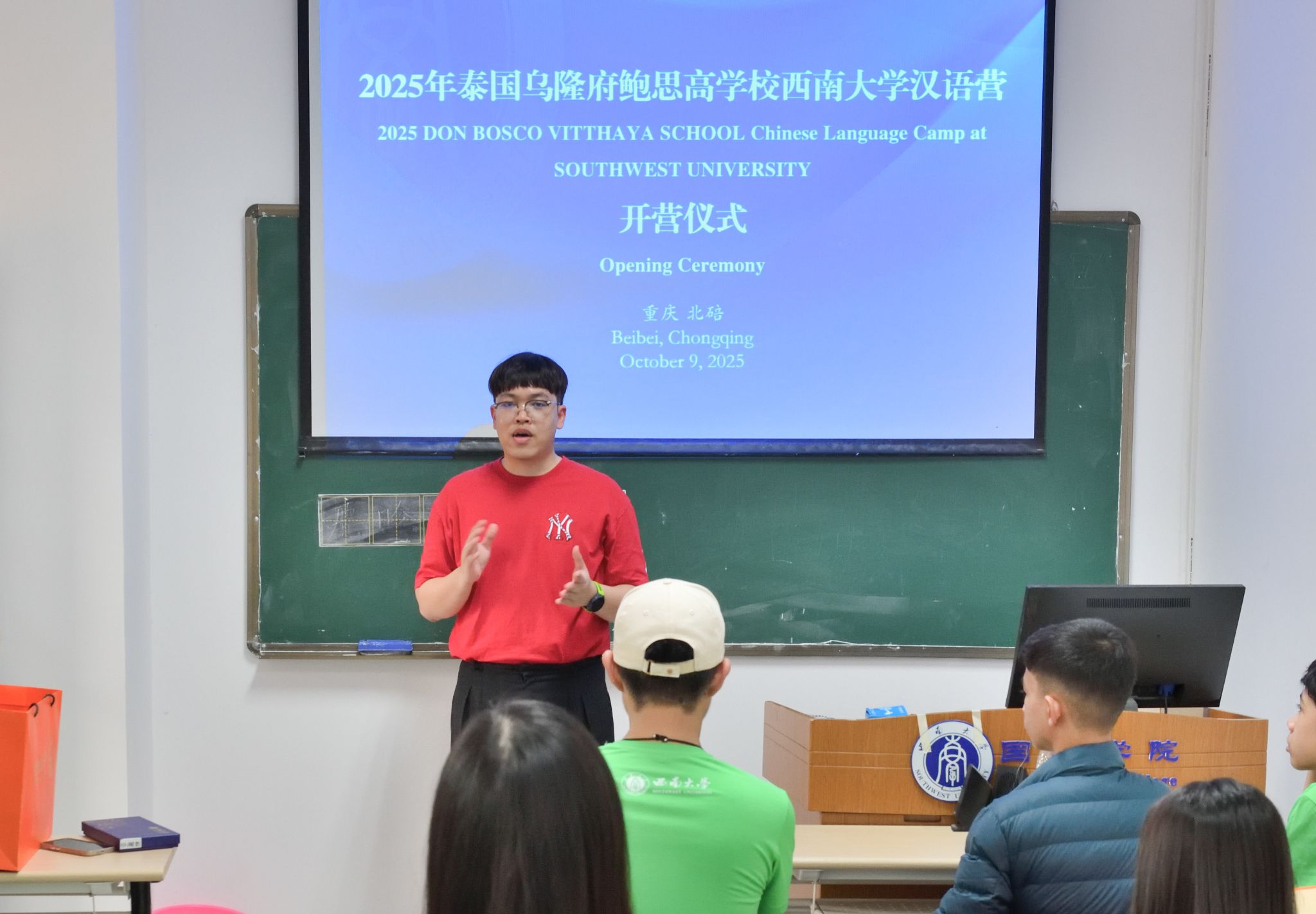10月9日上午,“2025年泰国乌隆府鲍思高公司betway必威中国汉语营”开营仪式在betway必威中国紫云楼举行。betway必威中国招生办公室王鹊,泰国员工助理姚崇,泰国乌隆府鲍思高公司教师赵子康、林雪虹和18名营员参加开营仪式。仪式由王鹊主持。