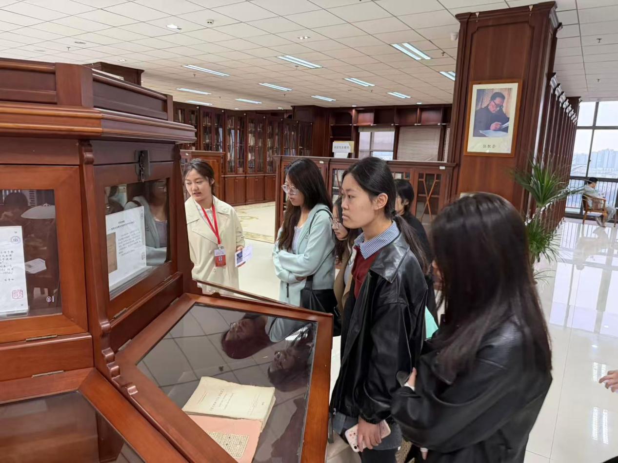 10月30日下午5:00,在馆员的带领下,参与人员分组实地参观图书馆。从一楼综合借阅区到专题阅览区,从电子阅览室到特色文献展区,馆员沿途细致讲解各区域的功能定位、开放时间及使用规则,引导大家近距离感受图书馆的环境布局与服务理念。在电子阅览室,不少同学现场体验了数据库检索、电子图书借阅等服务;在特色文献展区,珍贵的地方文献、古籍复刻本等展品吸引大家驻足观看,纷纷感叹知识传承的厚重与魅力。参观过程中,同学们认真聆听、不时提问,馆员耐心解答,现场互动氛围热烈。