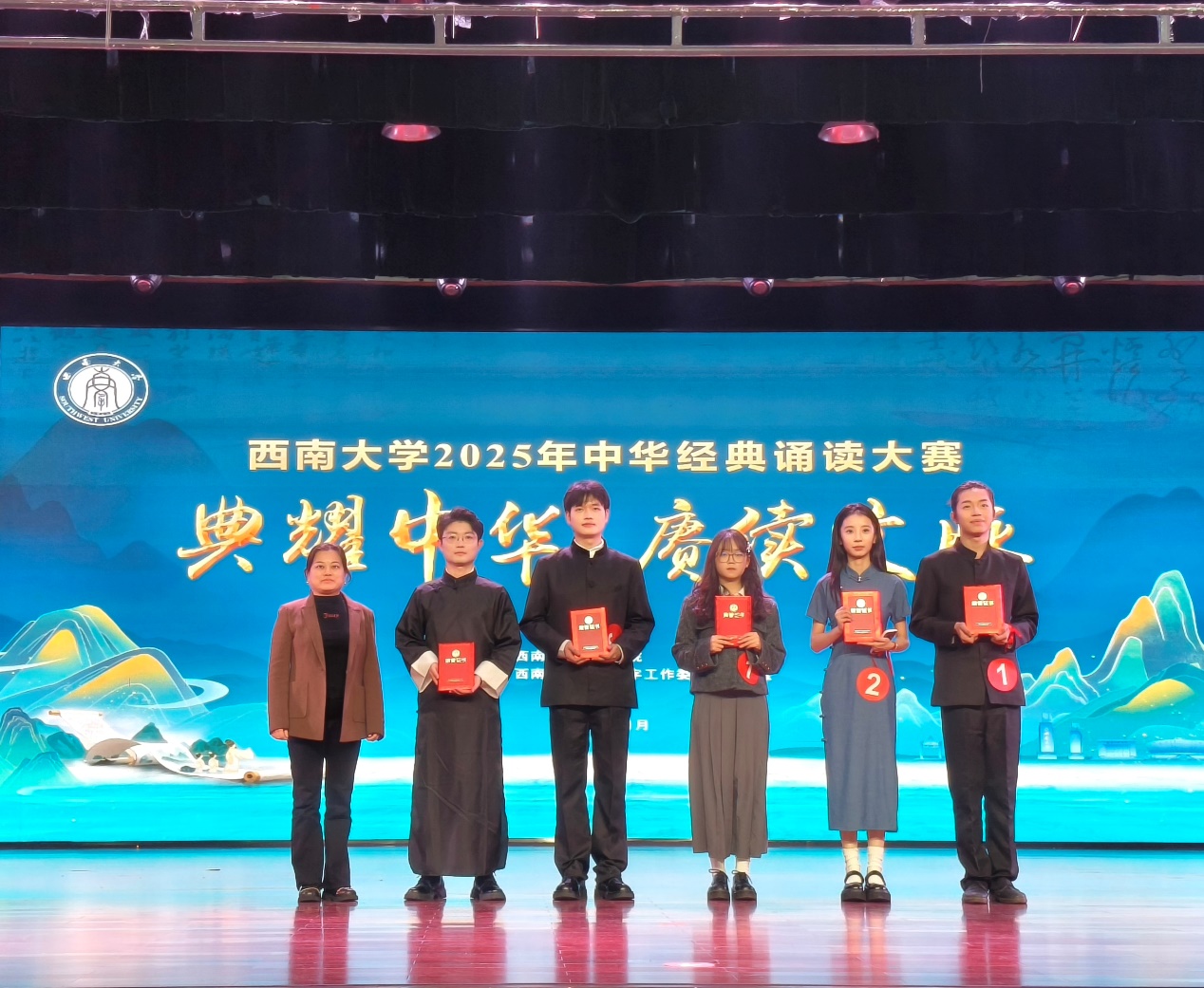 betway必威中国代表队由2025级国际中文教育硕士研究生陈德慧、谷明峻、颜嘉、张淑婷四位中国员工,以及来自泰国的PANKHAWONG TEERARAT(郑美乐)、越南的BUI THI THI THANH HANG(裴青恒)、马来西亚的LEW CHAI YING(刘彩盈)、尼日利亚的NWANKWO CHIOMA HENRIETTA(张一)四位汉语国际教育本科和汉语言文学本科国际员工共同组成。这支跨越国界的团队,以作品《诗意中国》为载体,将个人对中华文化的理解与热爱融入每一句诗词、每一个音节之中。他们的诵读,既有对中华经典韵味的精准把握,又融入了多元文化视角下的独特诠释,声情并茂地展现了一幅幅充满生机与浪漫的“诗意中国”画卷,赢得了现场评委与观众的高度认可。