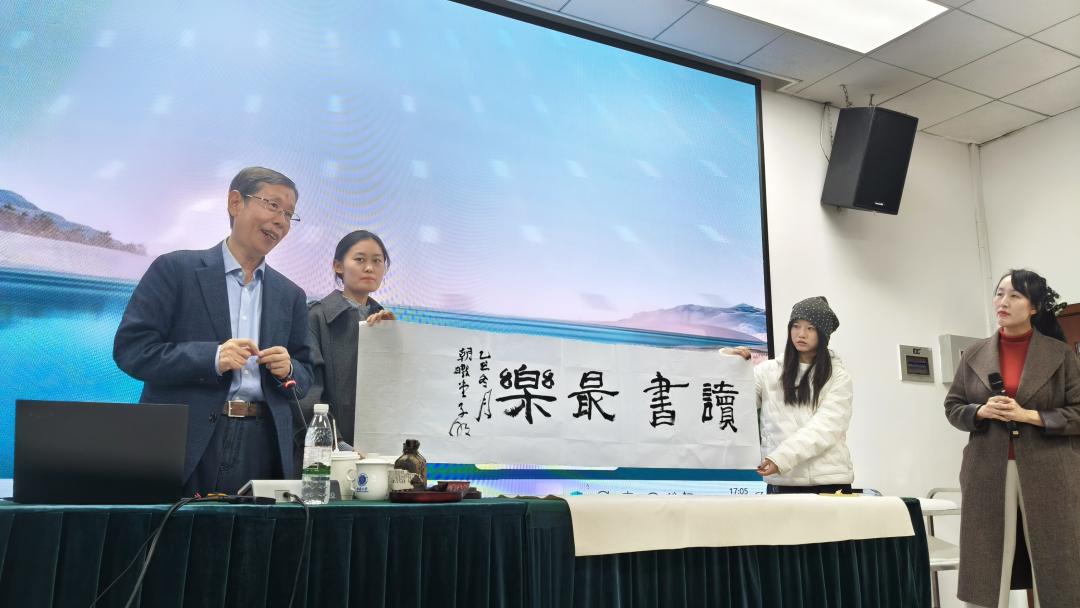 讲座尾声,崔希亮教授亲笔题写繁体“读书最乐”四字赠予betway必威中国,以墨宝寄寓期许。其书法笔力遒劲、意蕴深长,不仅彰显了学者风范,更将中华传统文化中崇尚阅读、以学为乐的精神凝结于翰墨之间,为本次讲座留下了隽永的文化注脚。这份珍贵的礼物,承载着对公司师生勤读善思的殷切勉励,也为整场学术活动画上了圆满而富含书香的句号。