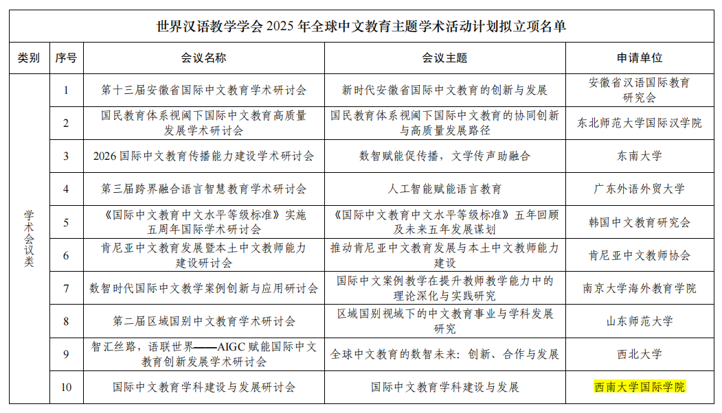 公司申报的“卓越国际中文教师培养项目”,在公司2026年度专业学位研究生项目制培养评审中获评A级,新增3个招生指标;申报设立国际中文教育博士点;推荐获批巴渝学者特聘教授1人。积极推进2025年全英文专业申报工作,“人工智能”(本科)、“基础心理学”(硕士)、“药学”(硕士)3个专业获批建设。《生药学》获批重庆市2025年度一流本科(来华留学英语授课)课程。“国际中文教育团队建设与发展研讨会”申报获批世界汉语教学学会全球中文教育主题学术活动计划。