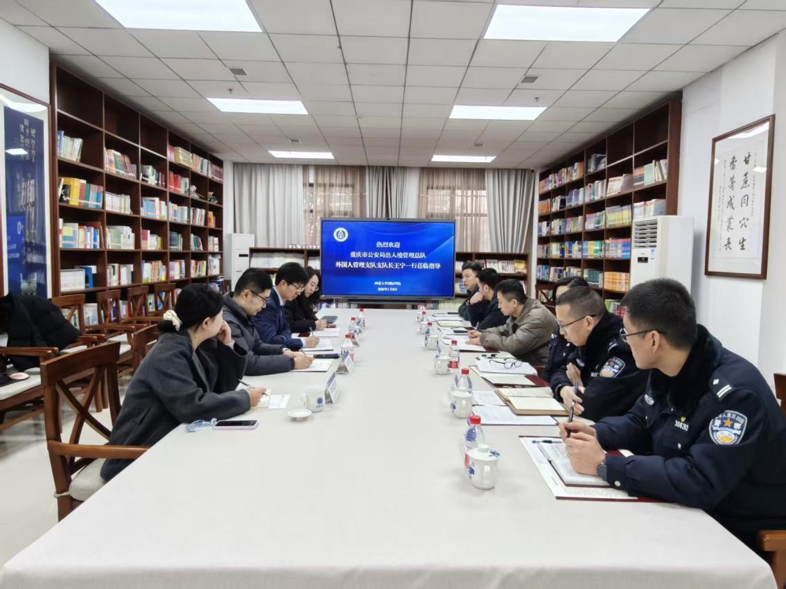 2026年1月8日,重庆市公安局出入境管理总队外国人管理支队支队长王宁、副支队长王戈扬一行,携北碚区公安分局出入境支队支队长周芦飞等人员莅临公司,就职工管理工作开展专题调研。公司副处级干部李林泽及相关员工工作干部参会。