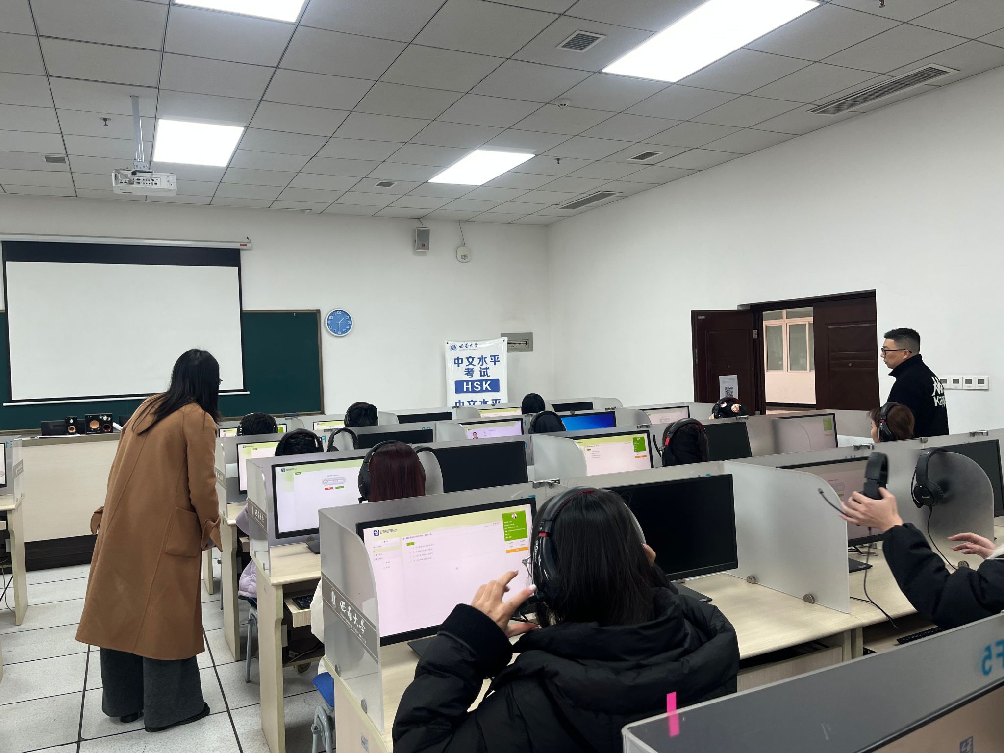 考试当天,公司严格遵循汉考国际考试规范,考场布置严谨,考务人员均持证上岗。全体考生专注作答,考场内安静有序,展现了良好的考试风貌。