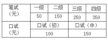 YCT考试报名收费标准如下: