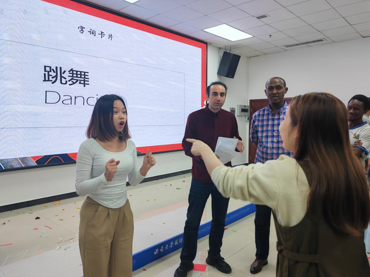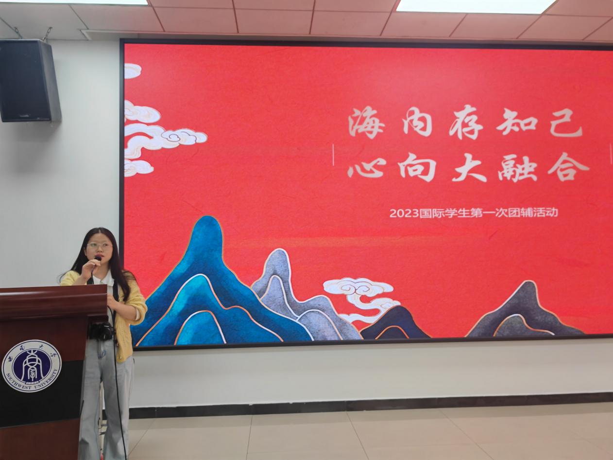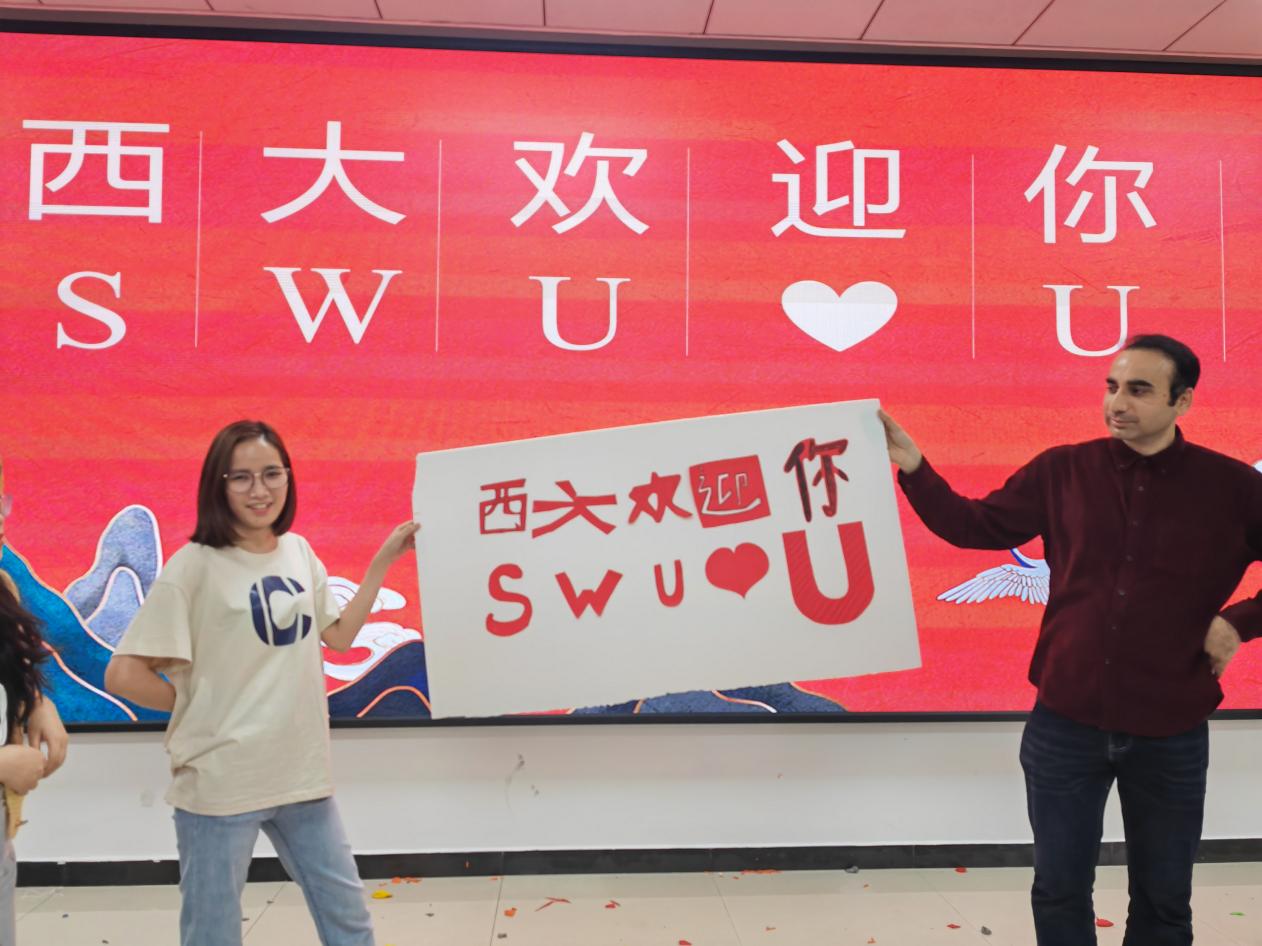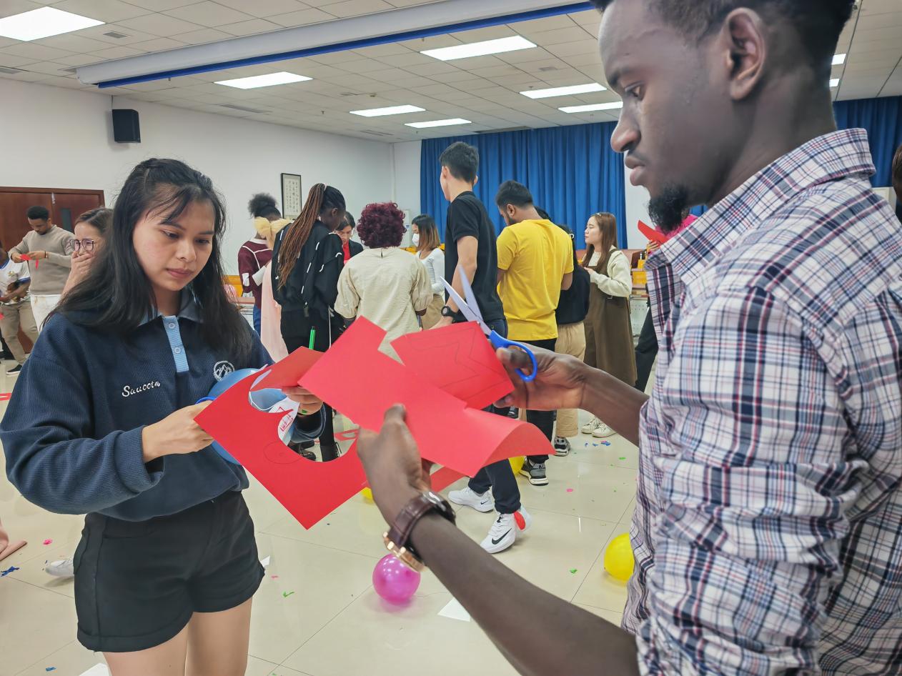 通过剪纸剪出自己姓名的首字母,完成后所有小组按照抽签分工共同剪出“西大欢迎你”,贴在纯色背景板上。将传统文化与活动相结合,在增进沟通的过程中也能够加深对中国传统文化的了解。
