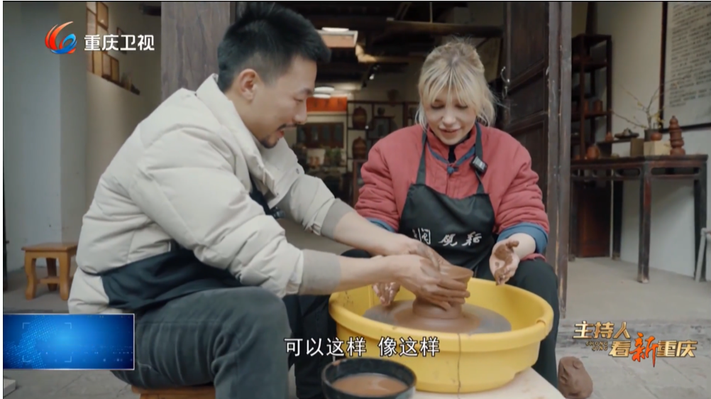 与此同时,在荣昌,汪莲同学正沉浸在另一种独特的中国年味之中。她踏入了荣昌传统文化的殿堂,近距离领略了荣昌陶这一非物质文化遗产的制作技艺。在荣昌陶的制作现场,汪莲被匠人们那娴熟而精湛的技艺深深吸引,她忍不住亲手尝试制作陶器,感受着泥土在指尖的流转与变化。