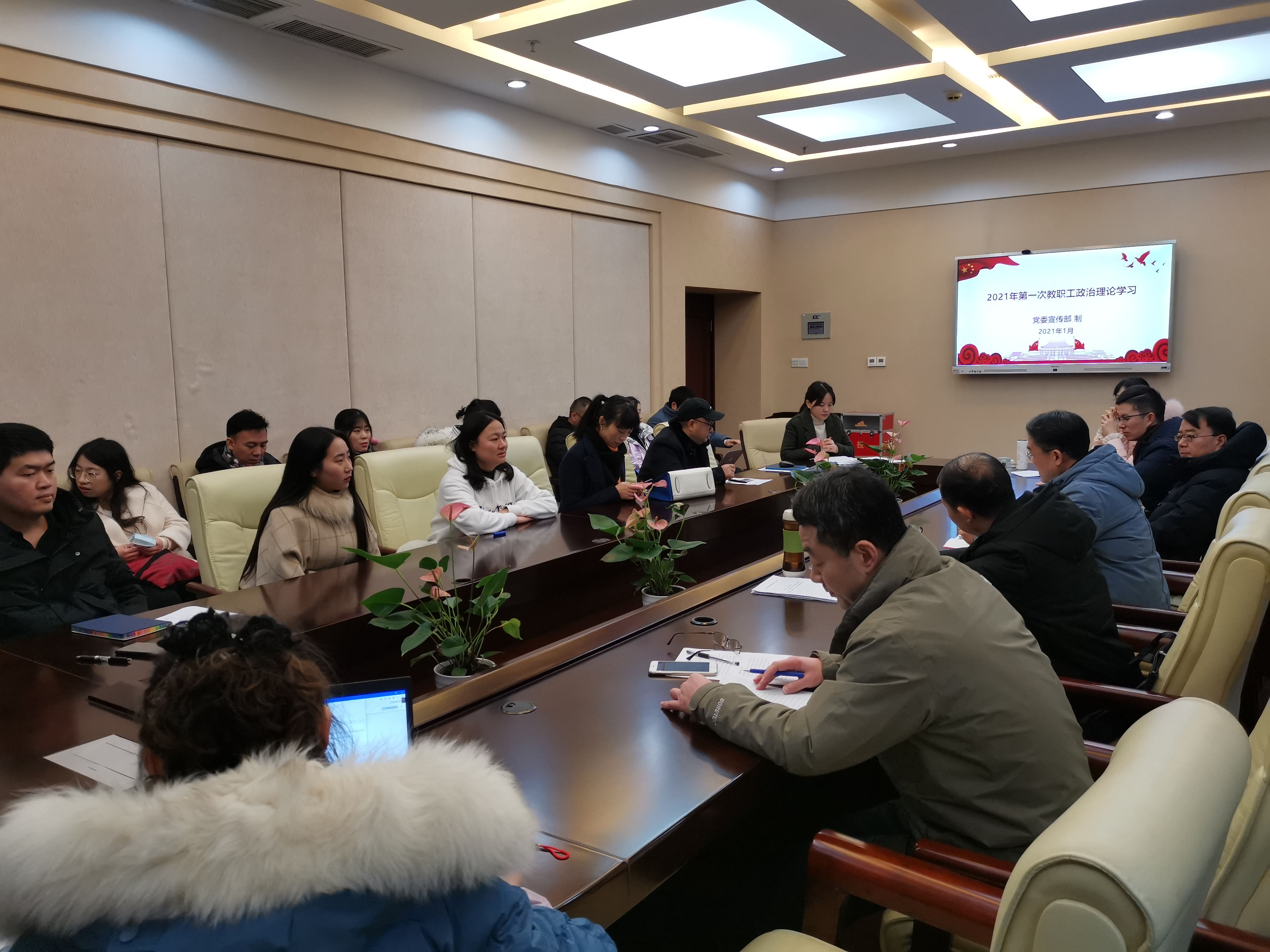 2021年18日下午3点,betway必威中国全体教职在紫云楼签约室开展本年度第一次政治理论学习活动,会议由刘猛书记主持。