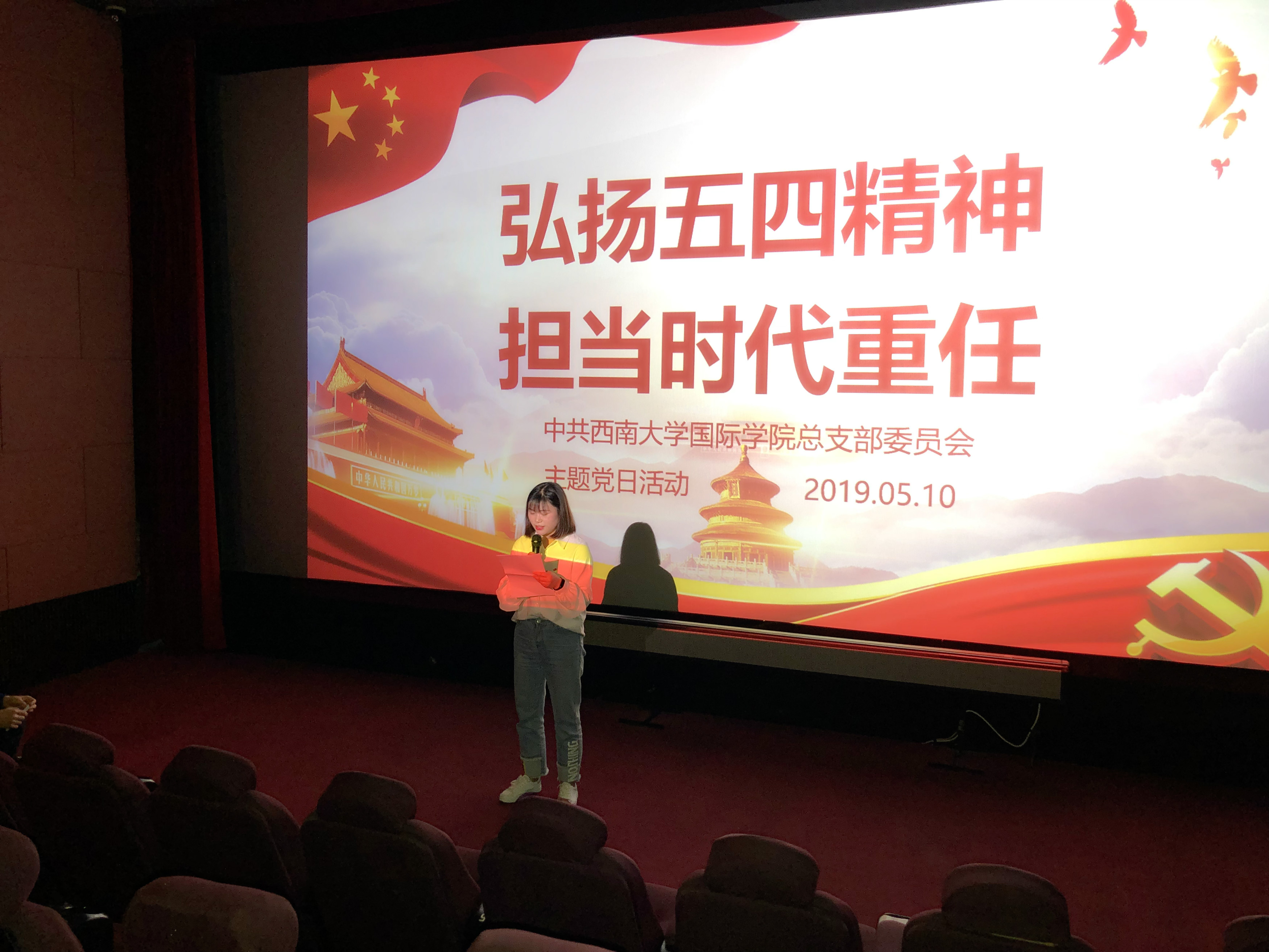 根据公司党委的统一部署,国际公司党总支于2019年5月10日下午三点开展了“弘扬五四精神,担当时代重任”的主题党日活动。教工一、二支部,研究生一、二支部均参加了此次活动。