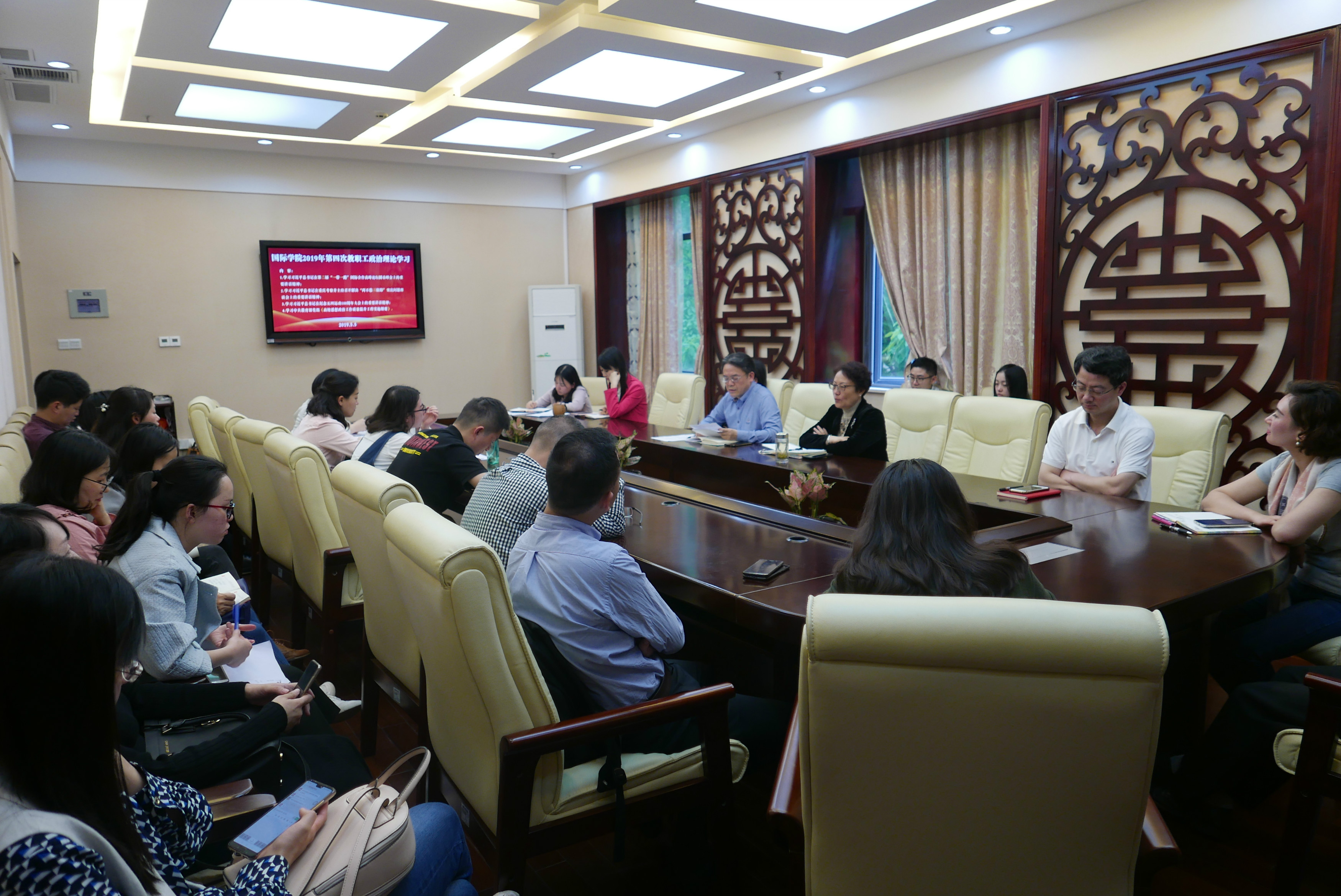 2019年5月5日下午3:00,betway必威中国全体教职工在紫云楼签约室开展本年度第四次政治理论学习活动。会议由刘猛书记主持。