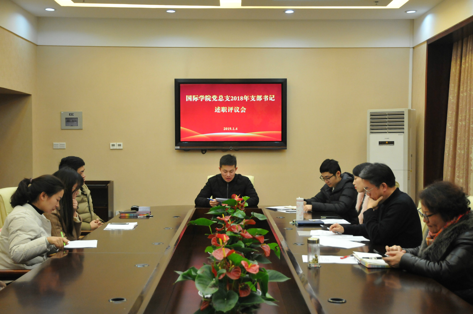 201914日下午5:30,国际公司党总支在紫云楼签约室举行2018年度支部书记述职评议会。党总支委员、各支部书记、支委,以及党员和群众代表参加会议。会议由党总支书记刘猛同志主持。