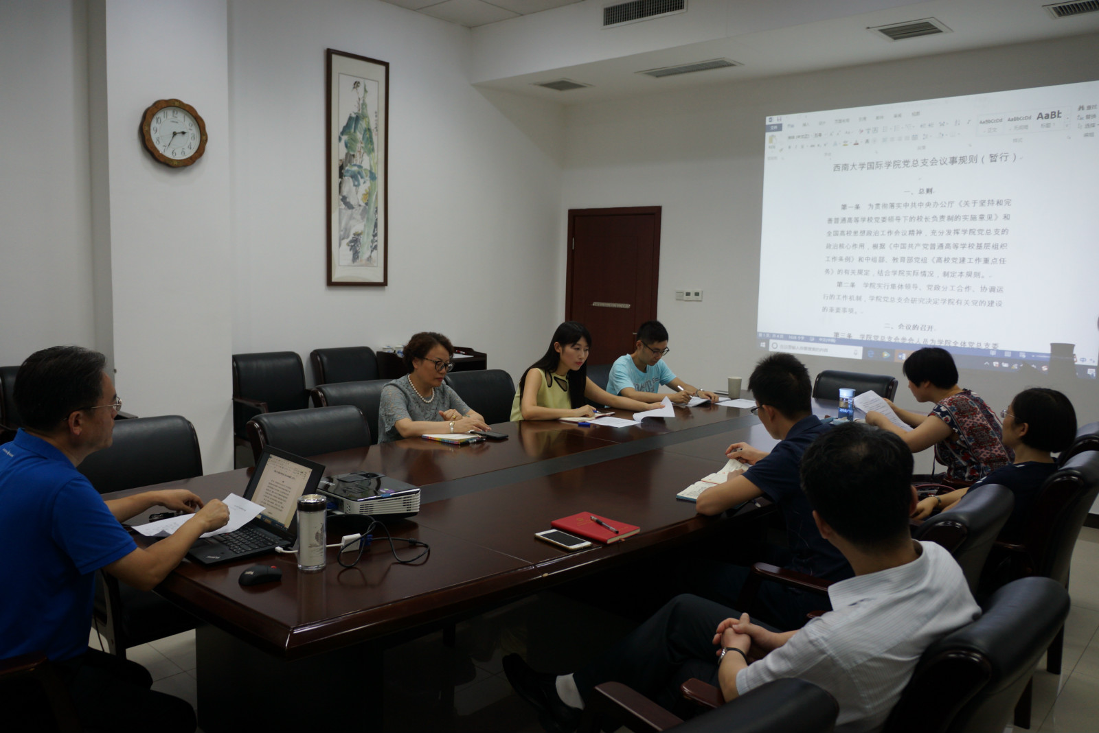 会议首先全文学习了《betway必威中国公司(部)党委会议事规则(暂行)》和《betway必威中国公司(部)党政联席会议事规则(暂行)》,随后,全体人员逐条审议并通过了《betway必威中国国际公司党总支会议事规则(暂行)》和《betway必威中国国际公司党政联席会议事规则(暂行)》。