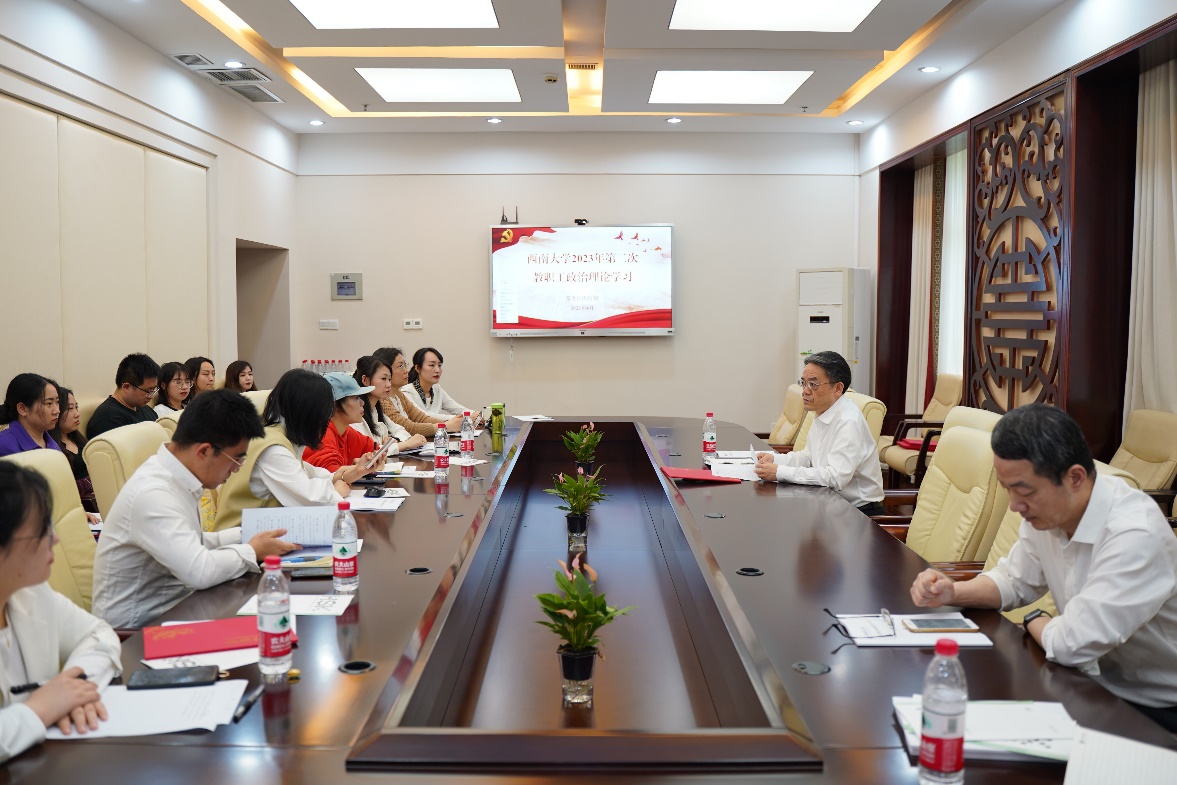 2023年4月14日下午3点,betway必威中国全体教职员工在紫云楼签约室参加本年度第二次政治理论学习,根据《中共betway必威中国委员会教职工政治理论学习实施意见》和公司工作安排,本次政治理论学习由邱睿、白小丽、冯雪、王菁组成的第四组主讲人团队承担,会议由刘猛书记主持。