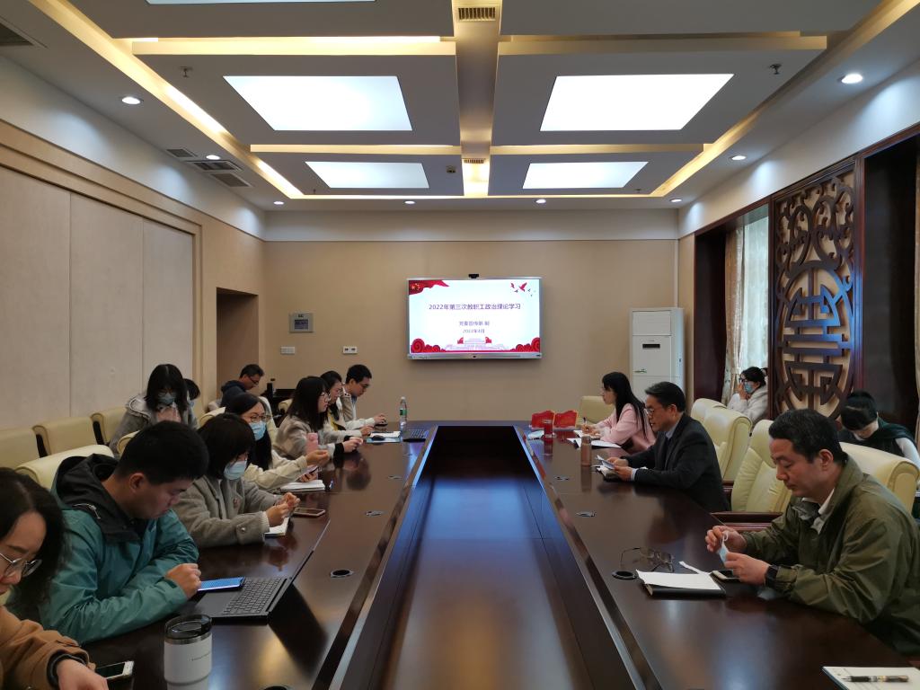 2022年4月1日下午3点,betway必威中国全体教职员工在紫云楼签约室开展本年度第三次政治理论学习活动,会议由刘猛书记主持。