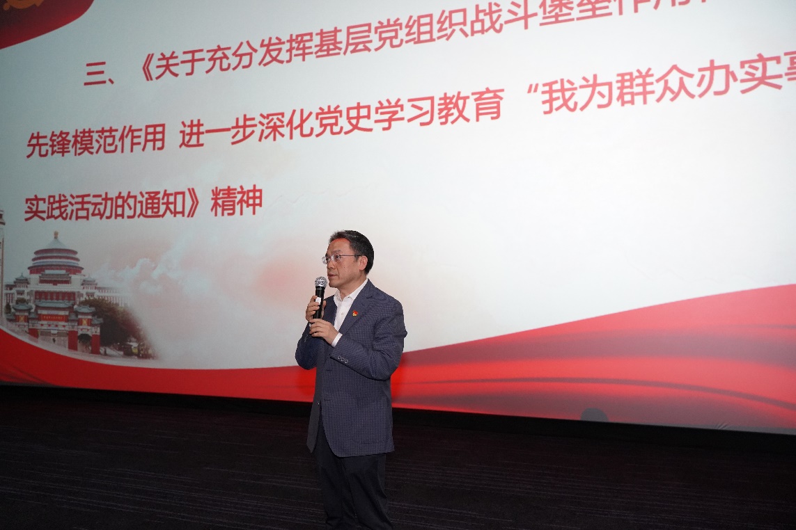 10月15日下午1点30分,国际公司党总支通过学习交流和现场观影的方式,在北碚万达影城开展主题为“学党史 践承诺 见行动”的支部联合主题党日活动。全体党员、师生代表近90人参加活动,活动由党总支委员杨昆同志主持。