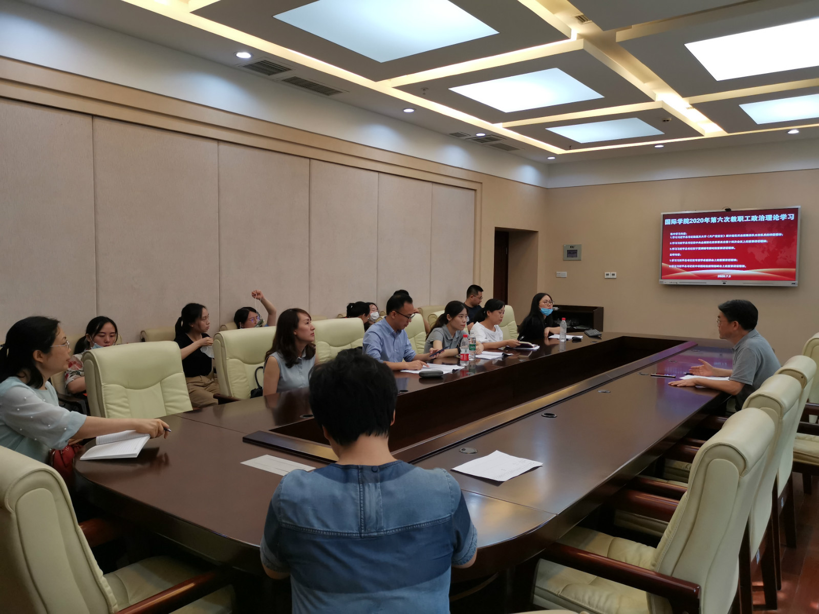 2020年7月3日下午4点,betway必威中国全体教职在紫云楼签约室开展了本年度第六次政治理论学习活动。