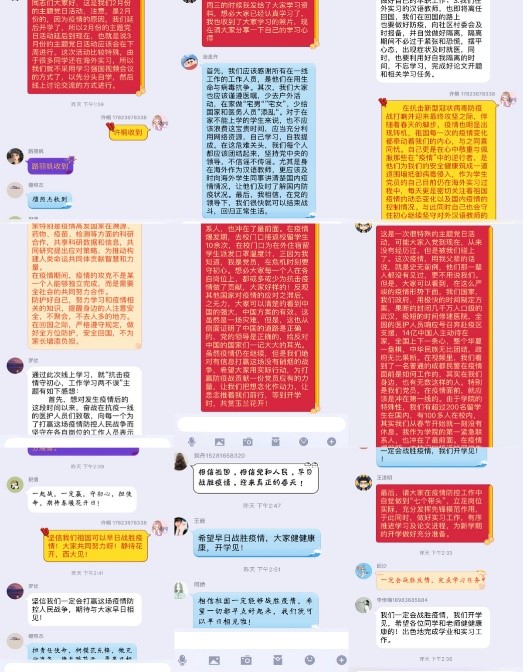 在总结中,支部书记王湛明同志充分肯定了此次支部线上主题党日活动,鼓励大家在危机面前守初心,用实际行动为打赢防疫战贡献一份党员应有力量。强调,在疫情防控工作中自觉做到“七个带头”,立足岗位实际,充分发挥先锋模范作用。大家纷纷表示,一定能够早日战胜疫情,迎来真正的春天,等到开学时,共赏玉兰花开!