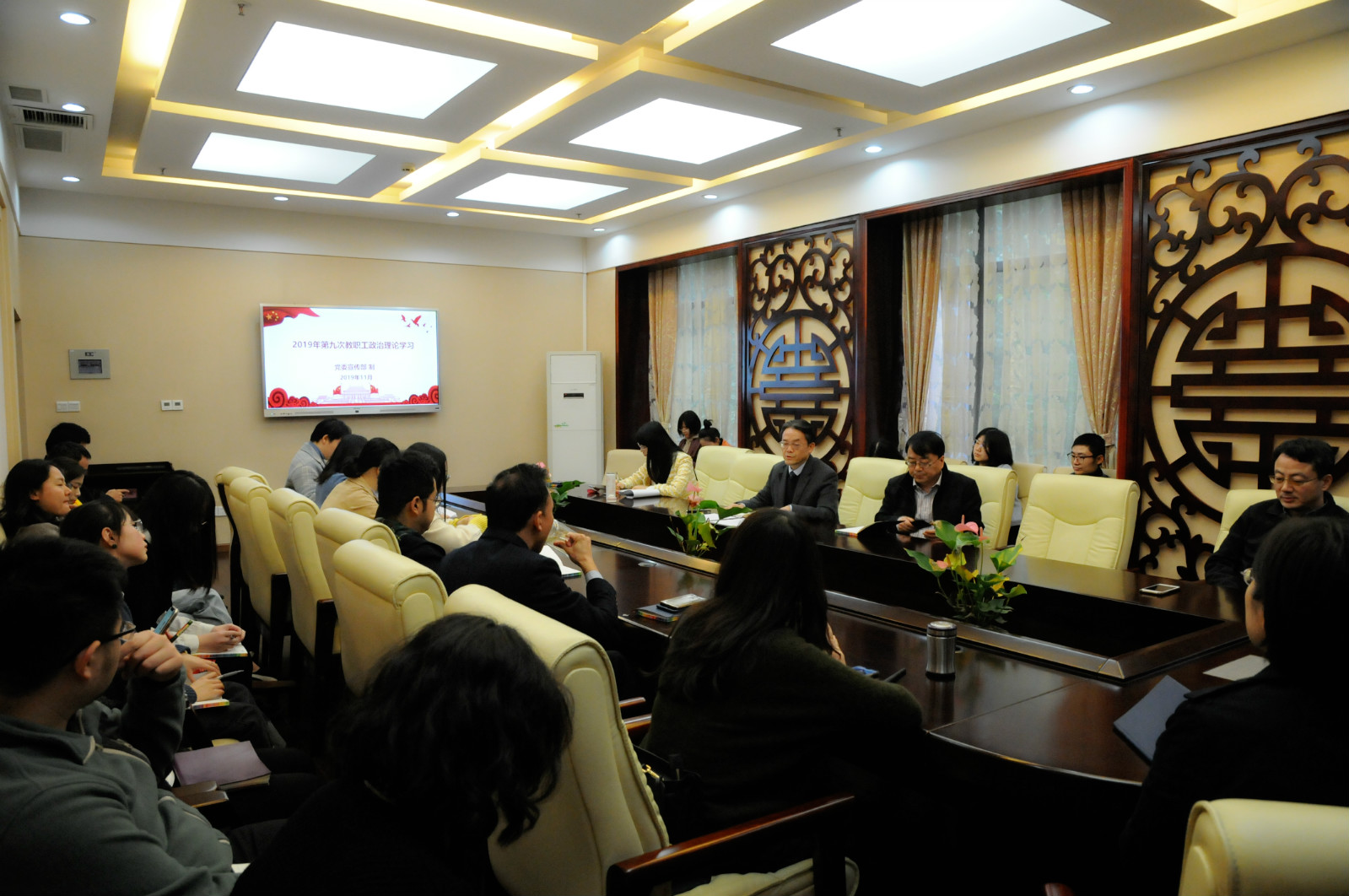 2019118日下午3:00,betway必威中国全体教职工在紫云楼签约室开展本年度第九次政治理论学习活动。会议由刘猛书记主持。