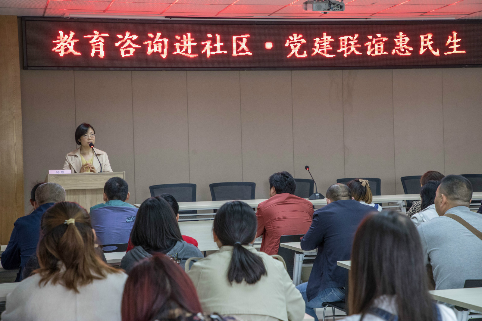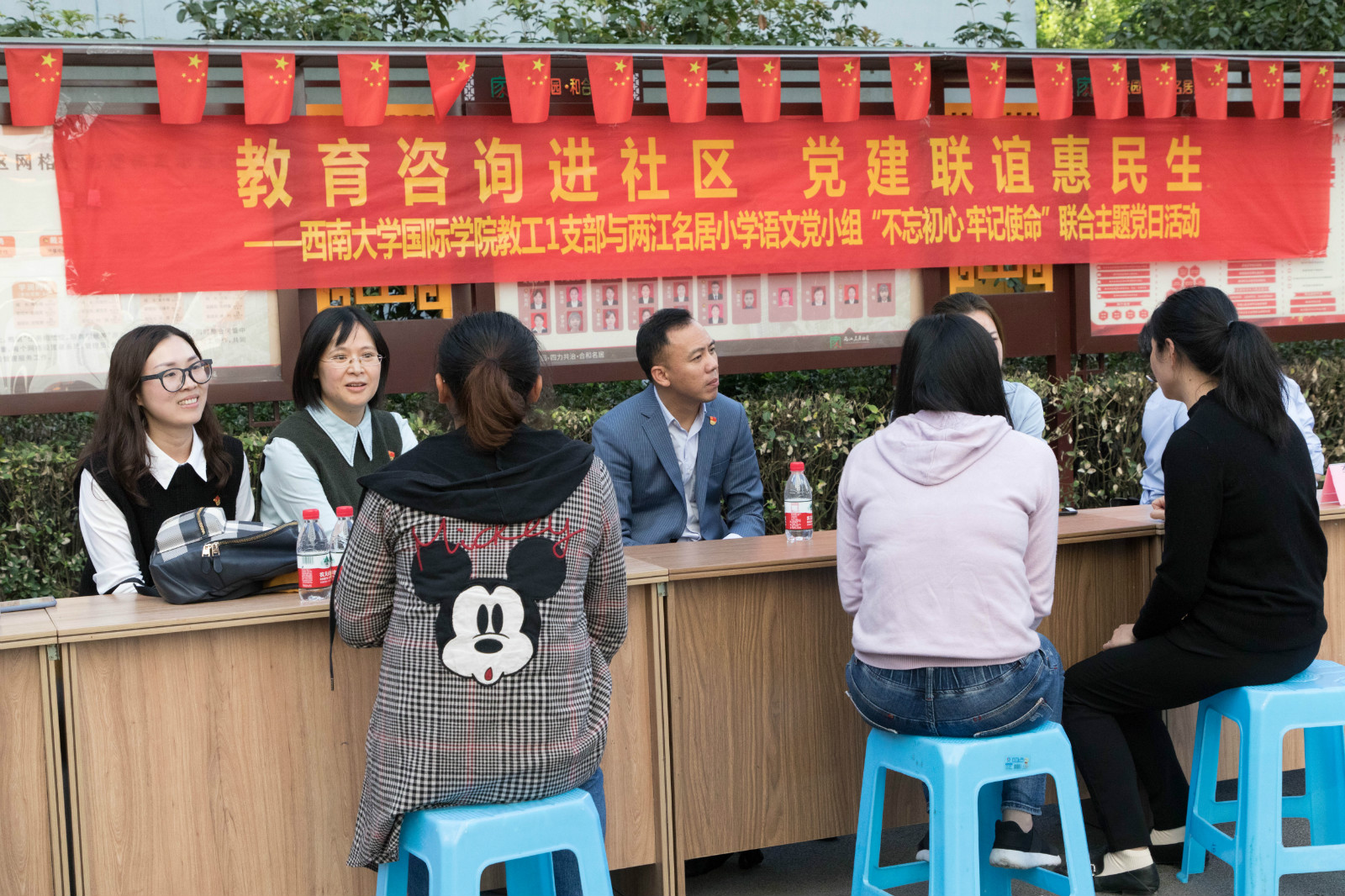 最后,双方支部的党员同志们一起走进社区开展教育咨询服务,详细地为家长解答育儿过程中的困惑。支部书记邱睿同志在咨询开始前,作了关于诗词学习的微讲座,受到与会家长的热捧。