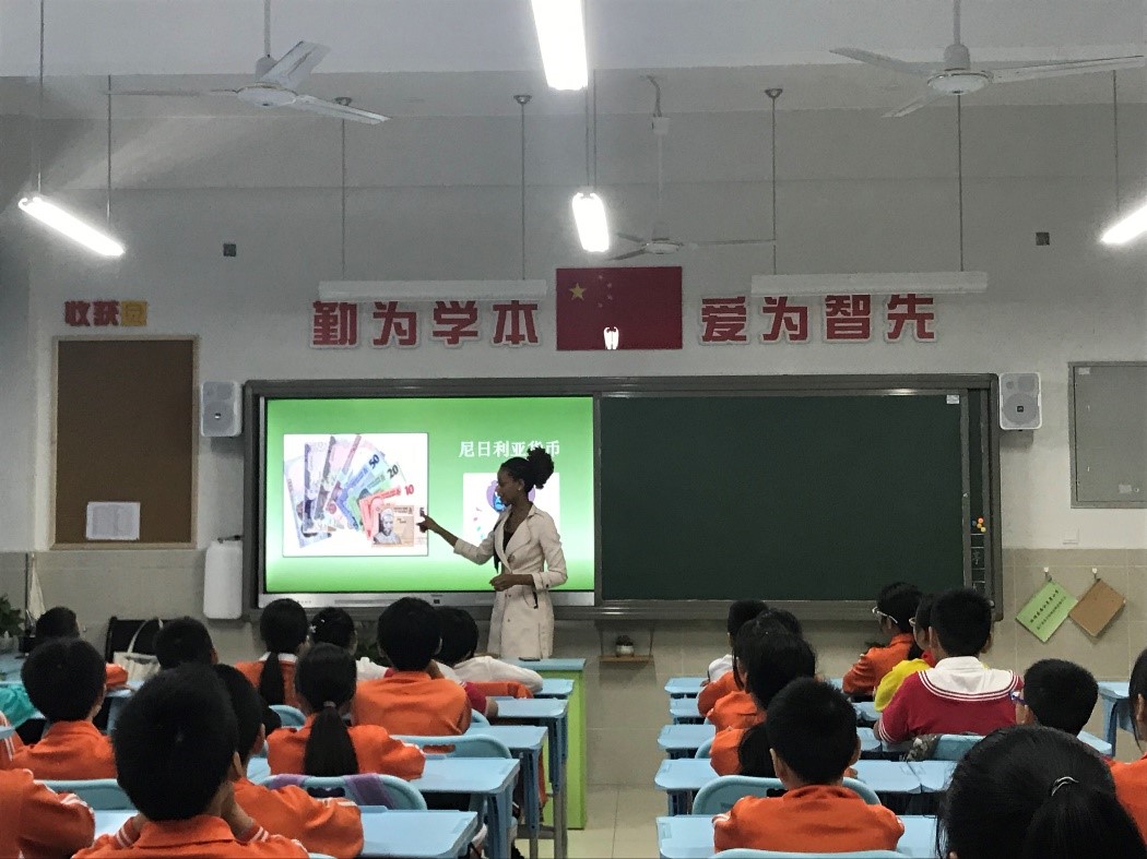当天下午,公司教工第一党支部的老师们分组带着七名职工进入六年级课堂,职工们通过图文并茂的方式向中国小员工展示了自己国家的文化,中外师生开展了热烈的互动交流。