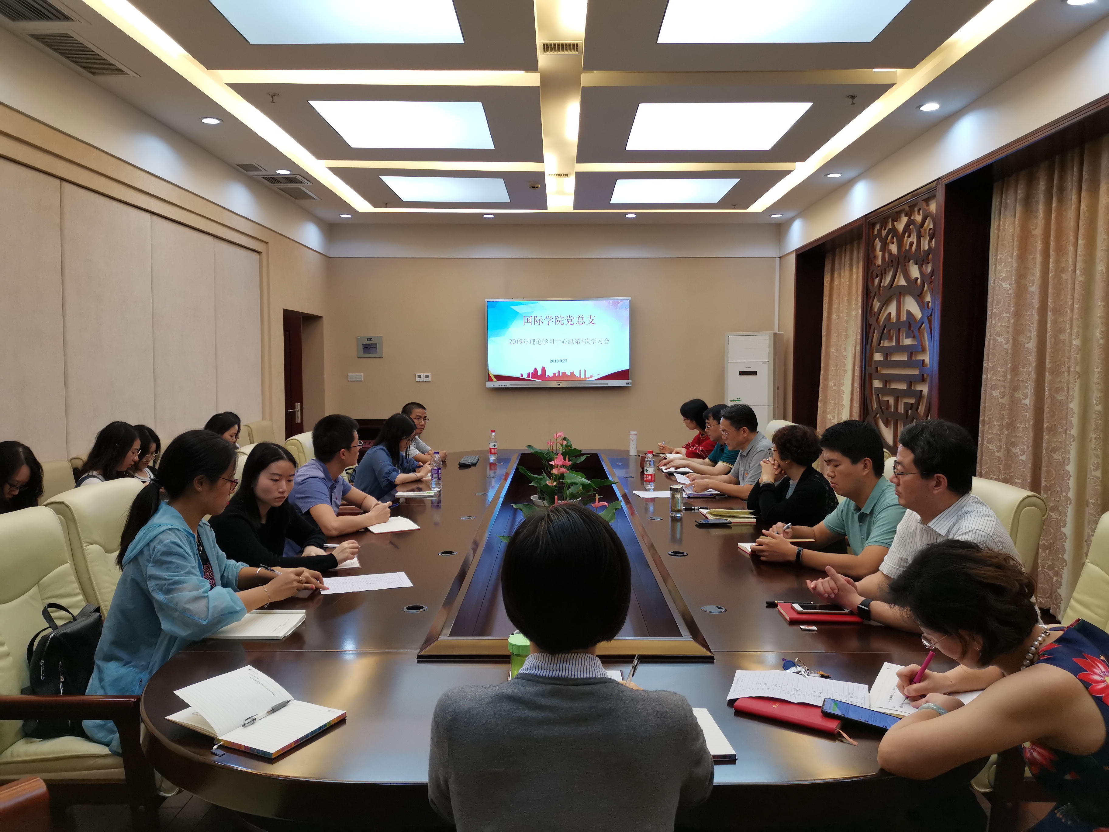 2019927日下午2:30,国际公司党总支“不忘初心,牢记使命”理论中心组(扩大)学习会在紫云楼签约室召开。公司党总支委员、非党总支委员院领导、4个支部的支委班子成员以及入党积极分子参加了此次学习会。会议由党总支书记刘猛同志主持。