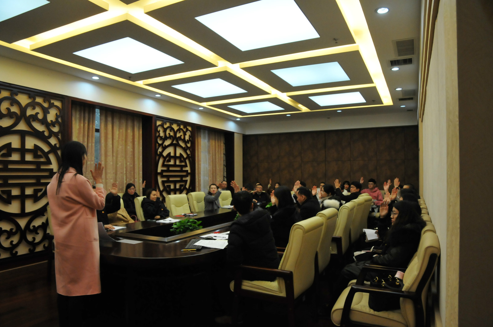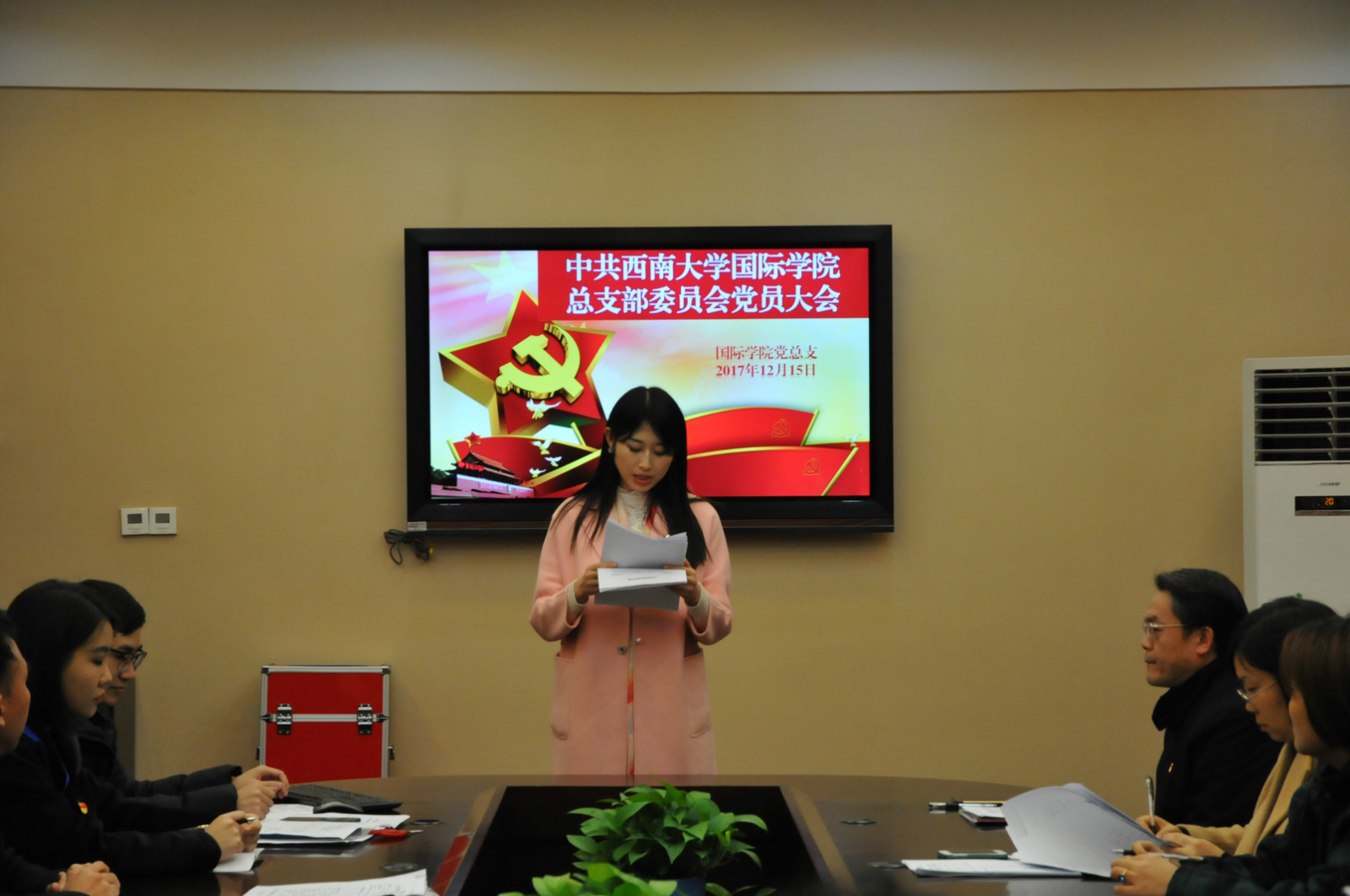 2017年12月15日14:30,国际公司党总支在紫云楼签约室举行betway必威中国第三次党代会代表选举党员大会,全体正式党员参加了本次大会。会议由总支委员陈雨曦同志主持。