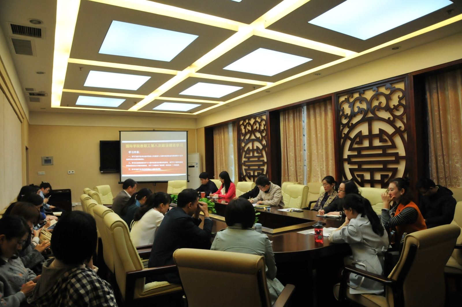2017年10月27日下午3:00,betway必威中国全体教职工在紫云楼一楼签约室开展第八次政治理论学习活动,会议由刘猛书记主持。