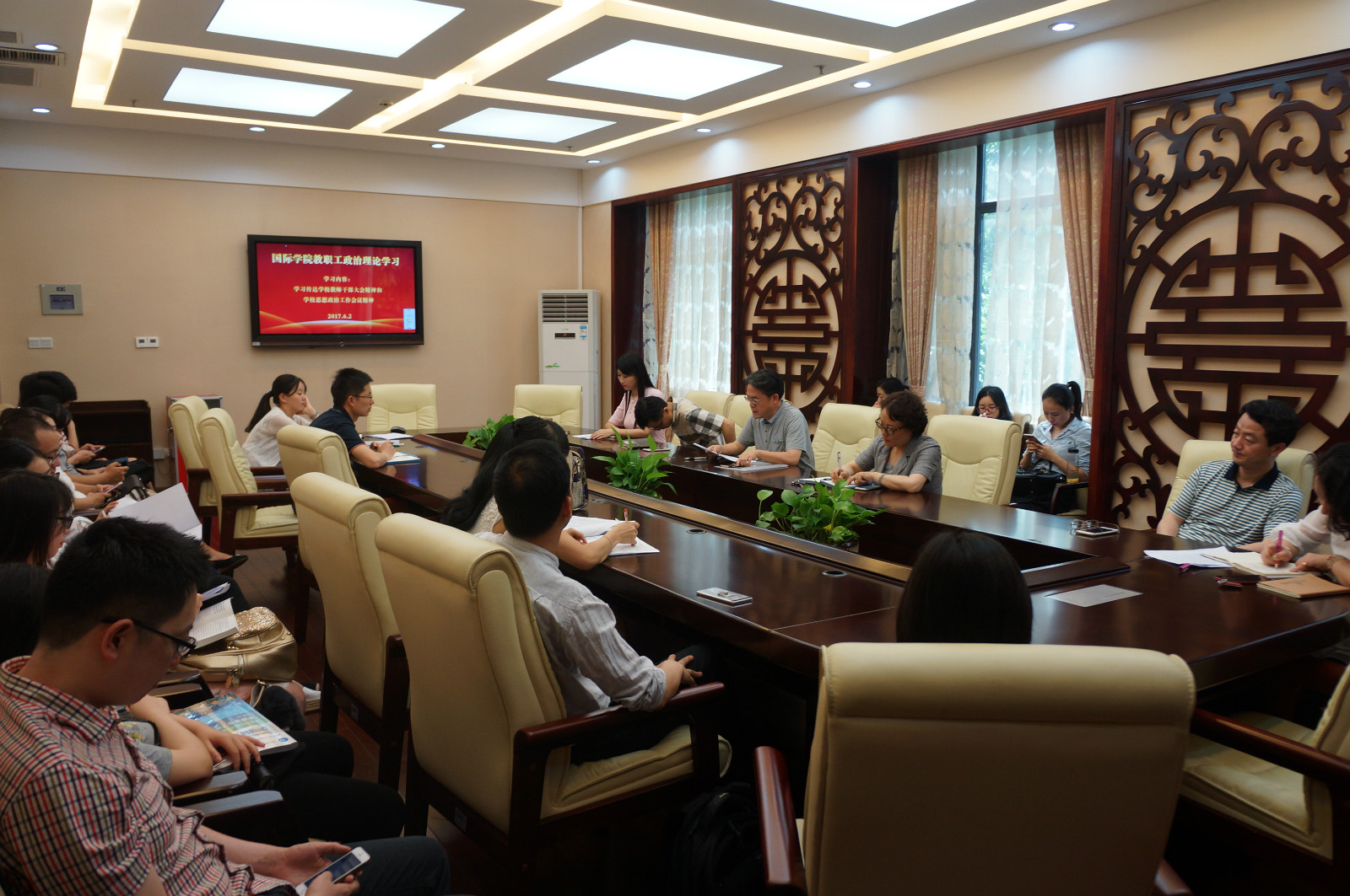 2017年6月2日下午3:00betway必威中国全体教职工在紫云楼一楼签约室开展政治理论学习活动。