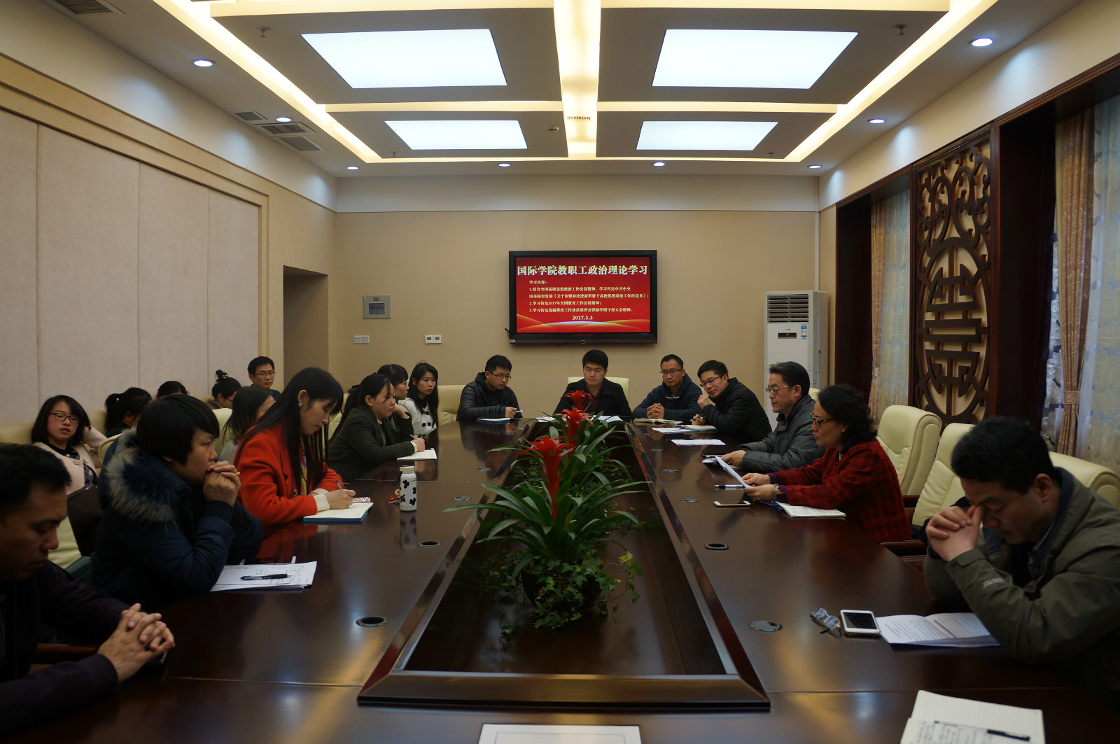 2017年3月4日下午3:00betway必威中国在紫云楼一楼签约室开展新学期的第一次政治理论学习活动,会议由刘猛书记主持。