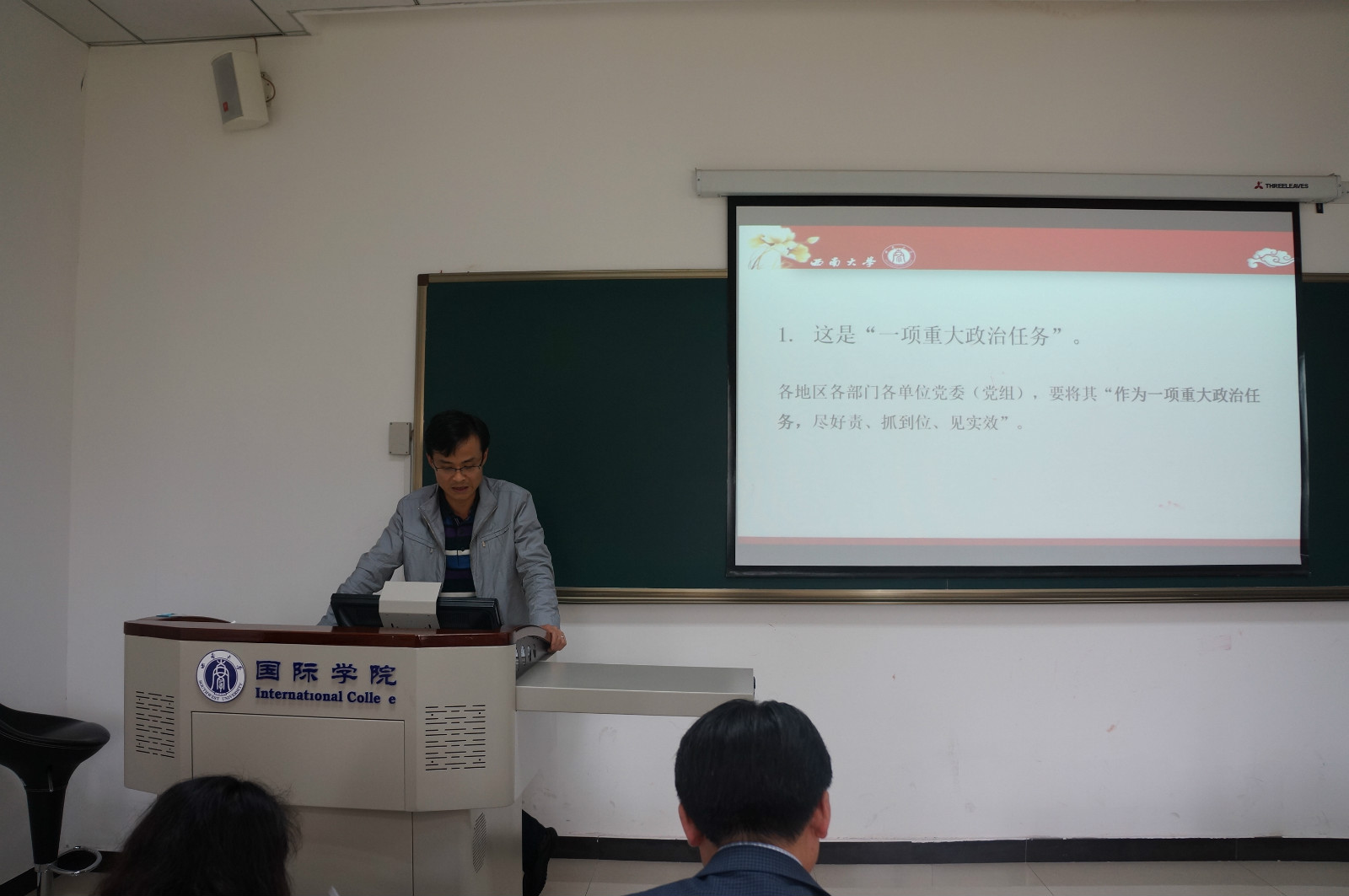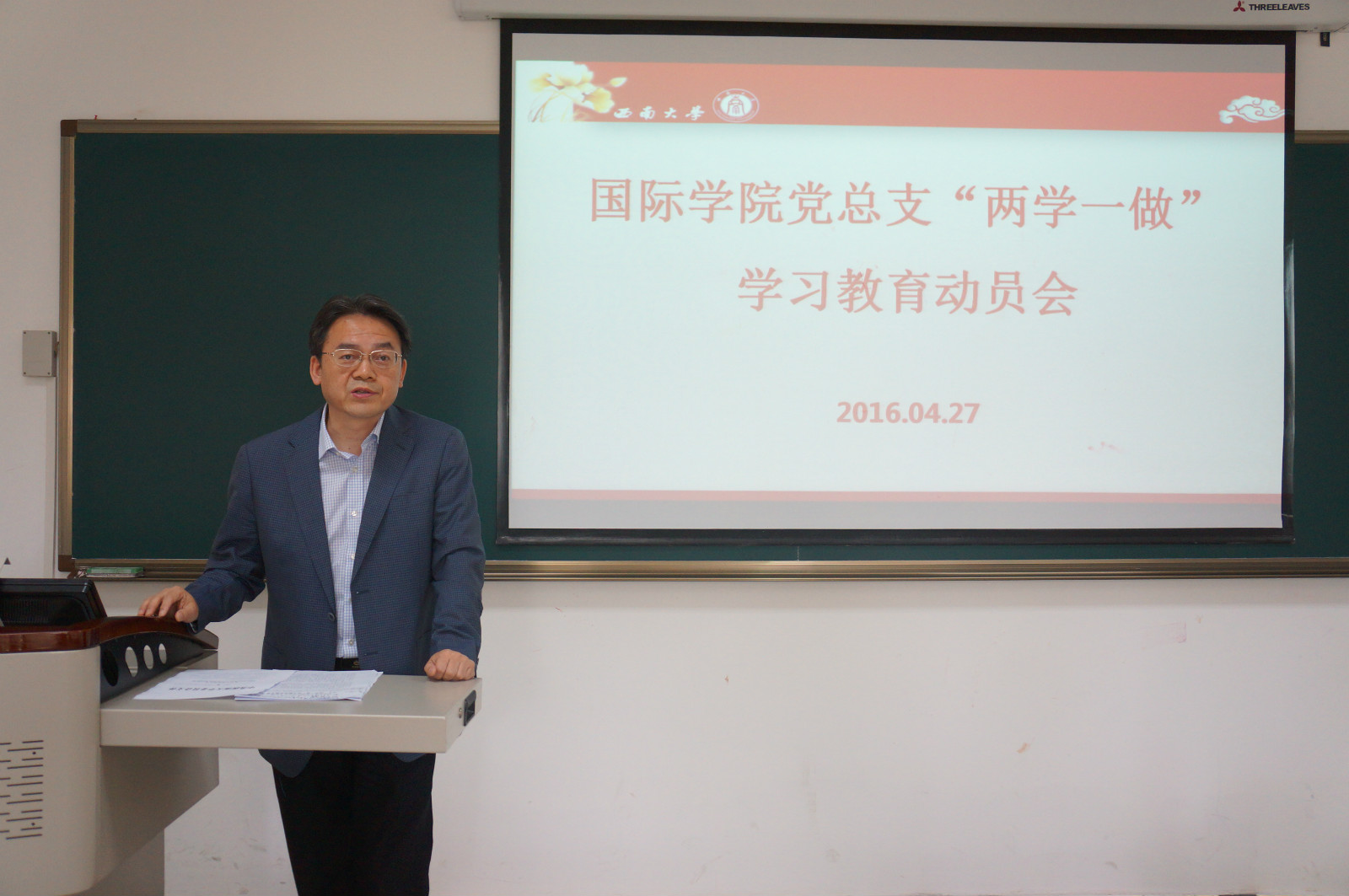 4月27日下午4点半,国际公司党总支在紫云楼312室举行“两学一做”学习教育动员大会,教工支部和两个研究生支部的所有党员参加会议,会议由党总支书记刘猛同志主持。