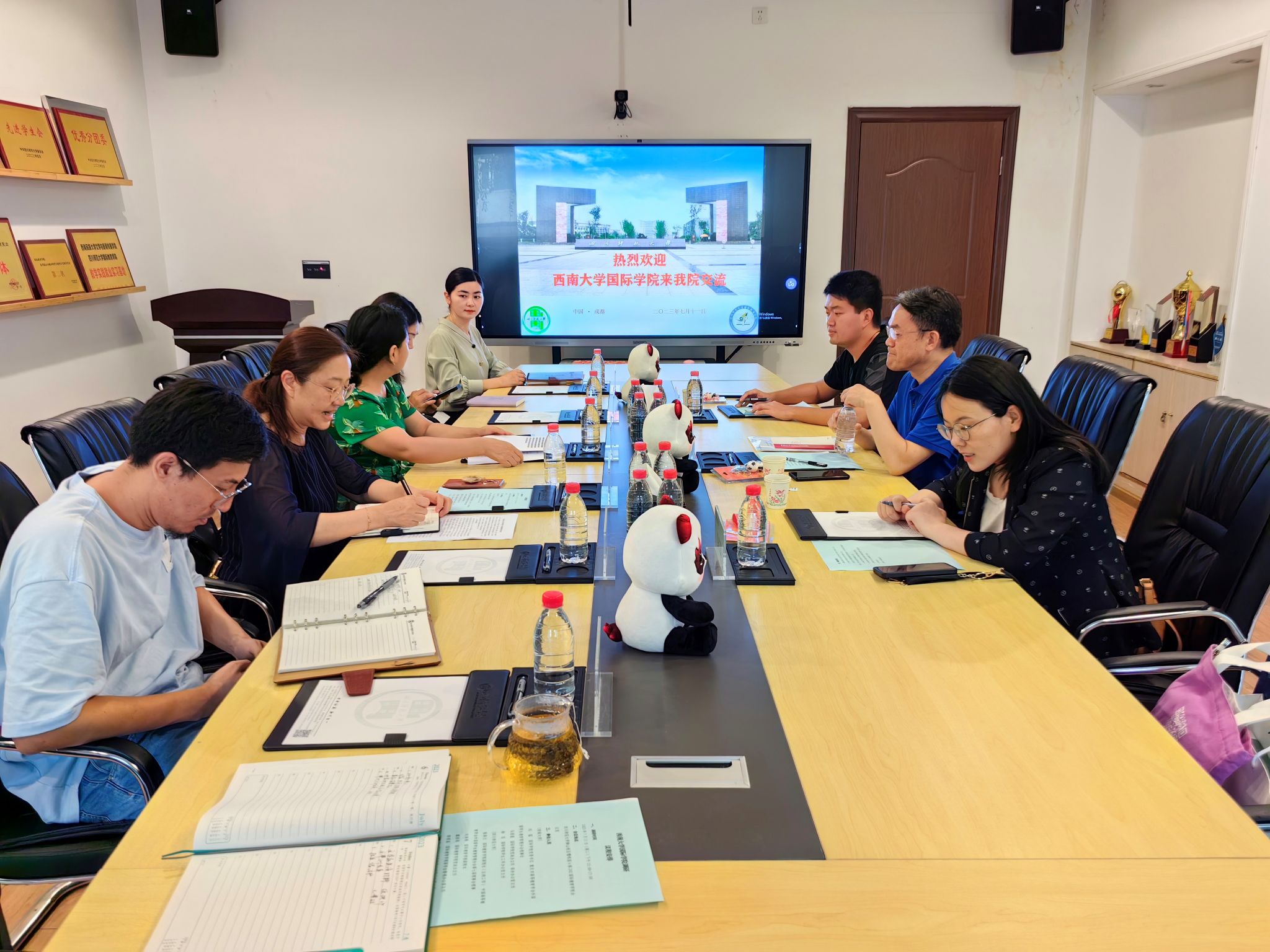 在西南交通大学国际教育公司,双方分享开展来华职工国情教育的理论探索和实践成果,探讨国情教育当前存在的问题及未来的发展方向。杨昆介绍重庆市高校“缙云知华”国际员工辅导员/班主任工作坊活动开展情况,刘猛书记和西南交通大学国际教育公司副经理李海表示,全力支持川渝高校共建国际员工辅导员/班主任工作坊,尽快组建川渝地区高校来华职工国情教育联盟。