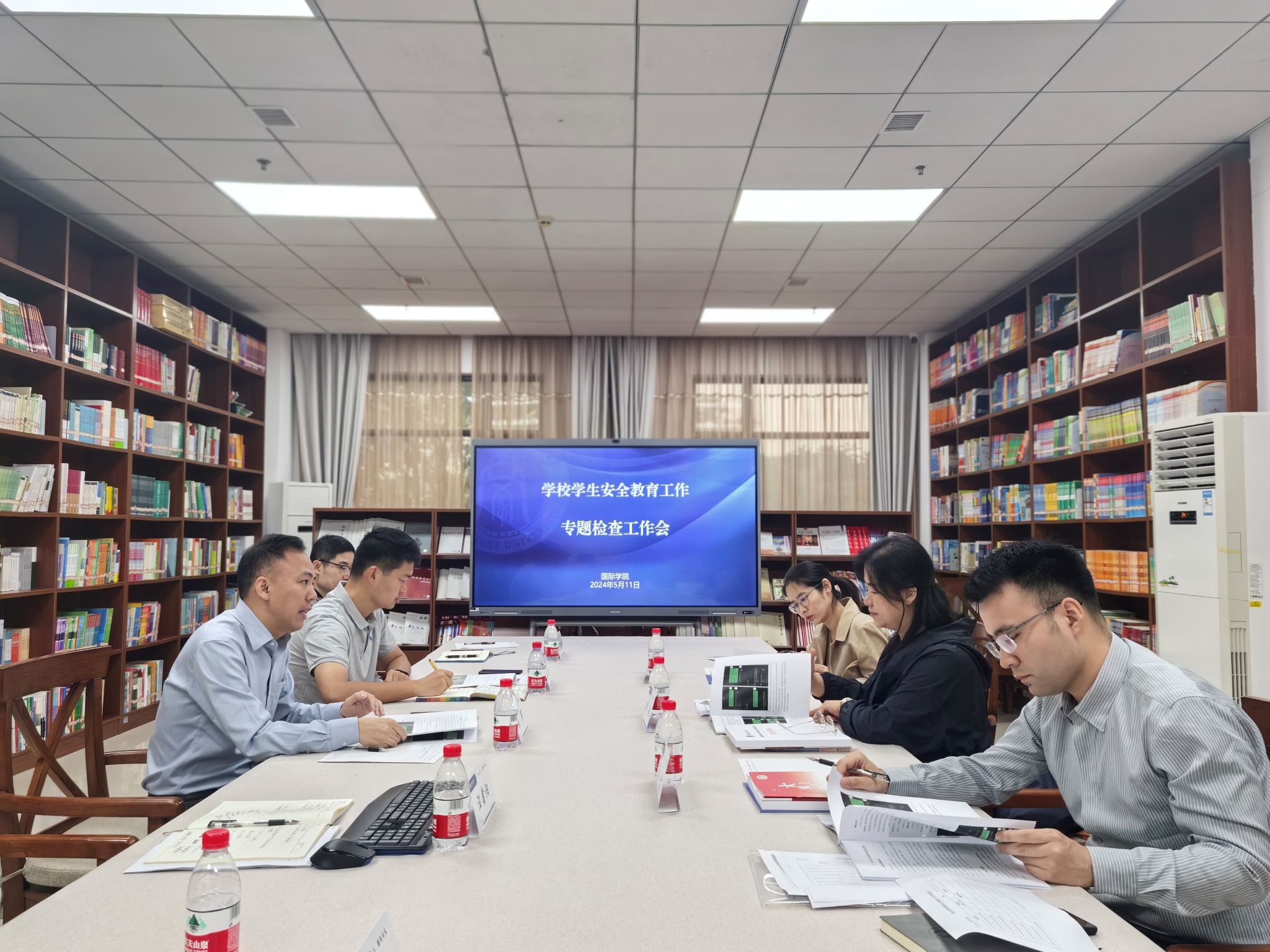 5月11日上午,公司第四检查小组来公司检查春季学期员工安全教育工作情况,公司党委副书记耿军,员工工作办公室主任杨昆及3名专职辅导员参加汇报交流。